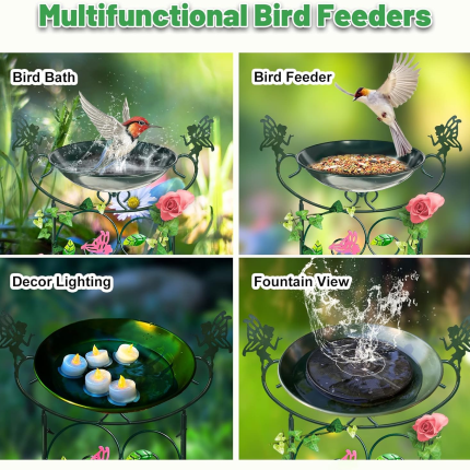 36″ Solar Metal Bird Bath & Planter