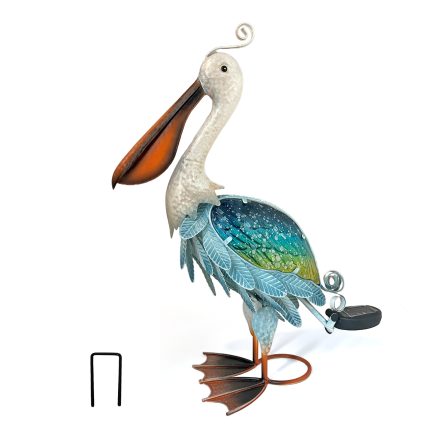 Solar Pelican Garden Statue (Blue & Green), 19 Inches