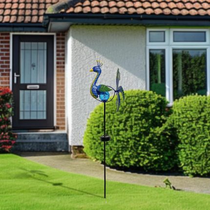 Solar Peacock Wind Spinner Decor – Color Changing LED Light