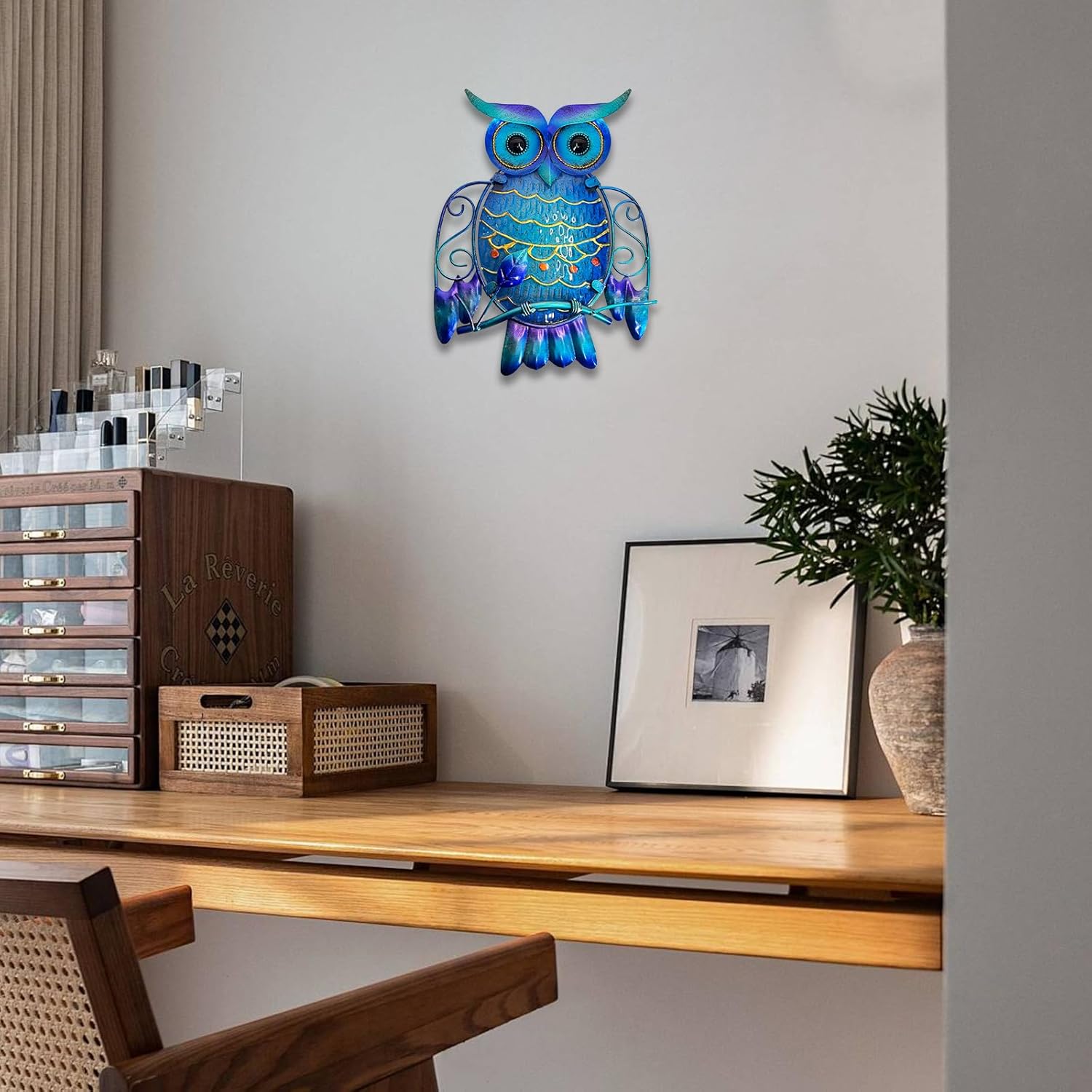 🦉 Whimsical Metal & Glass Owl Wall Decor (Rodent Deterrent)