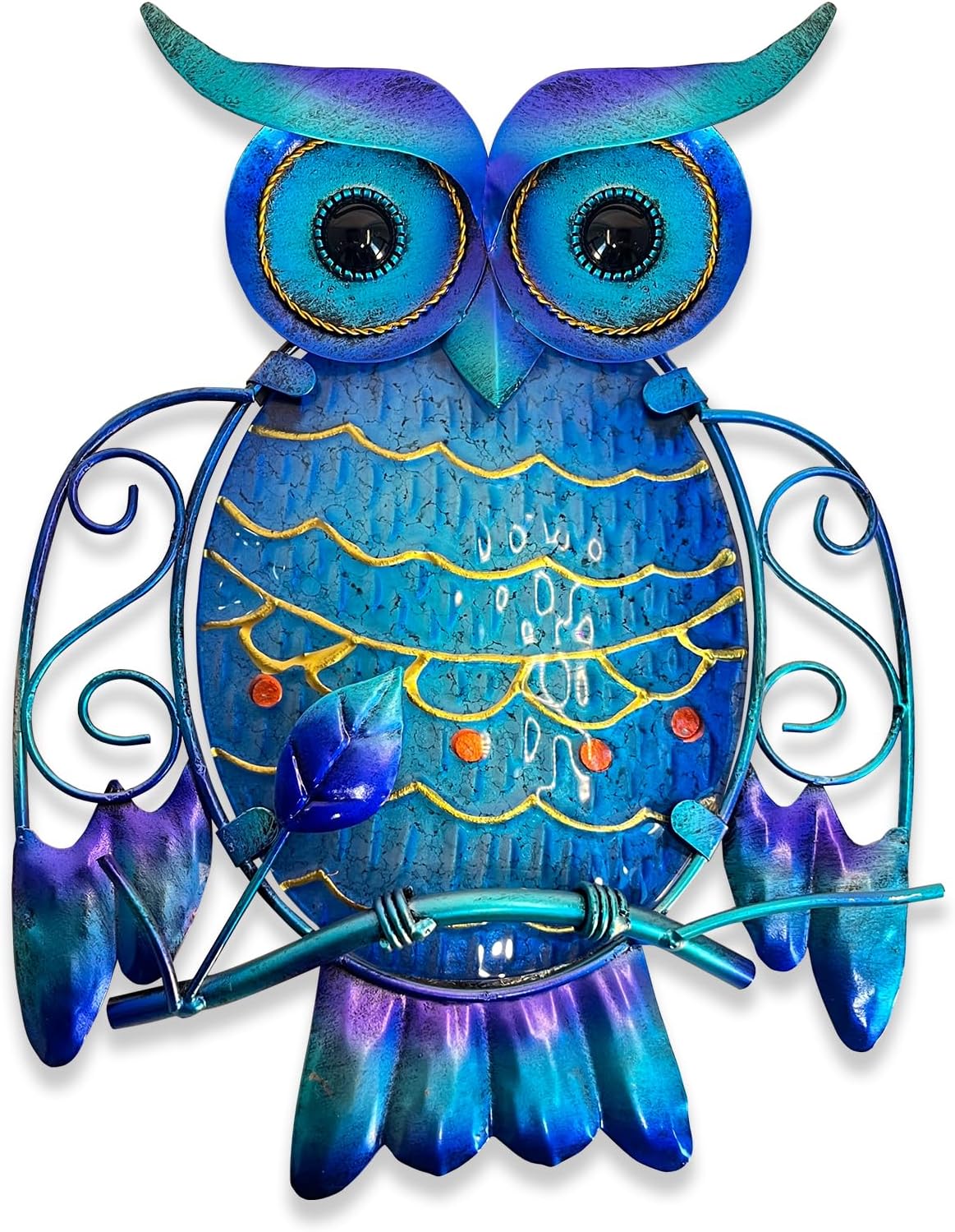 12″ Owl Wall Decor (Blue) – Metal & Glass Hanging Decor