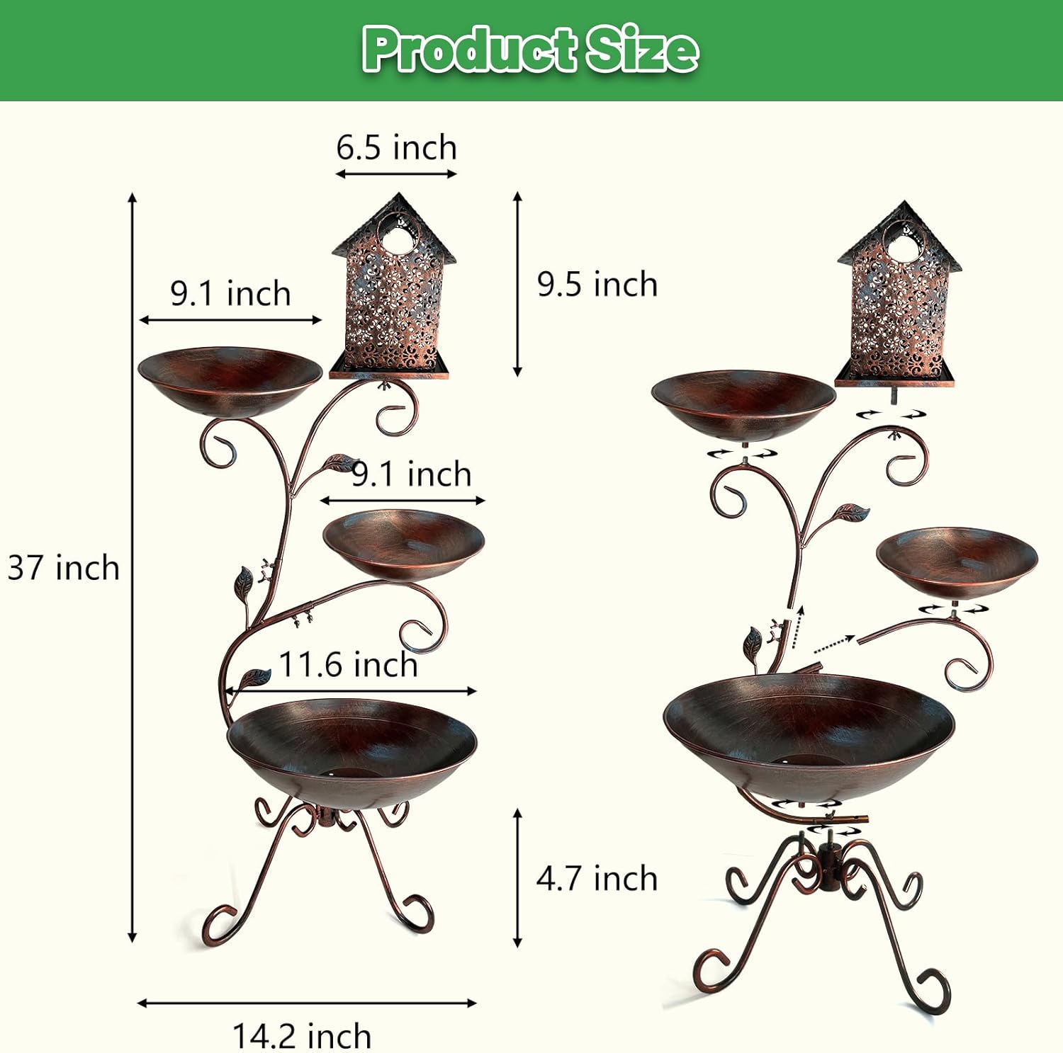 - Bird feeder bowl: 9.1″ diameter