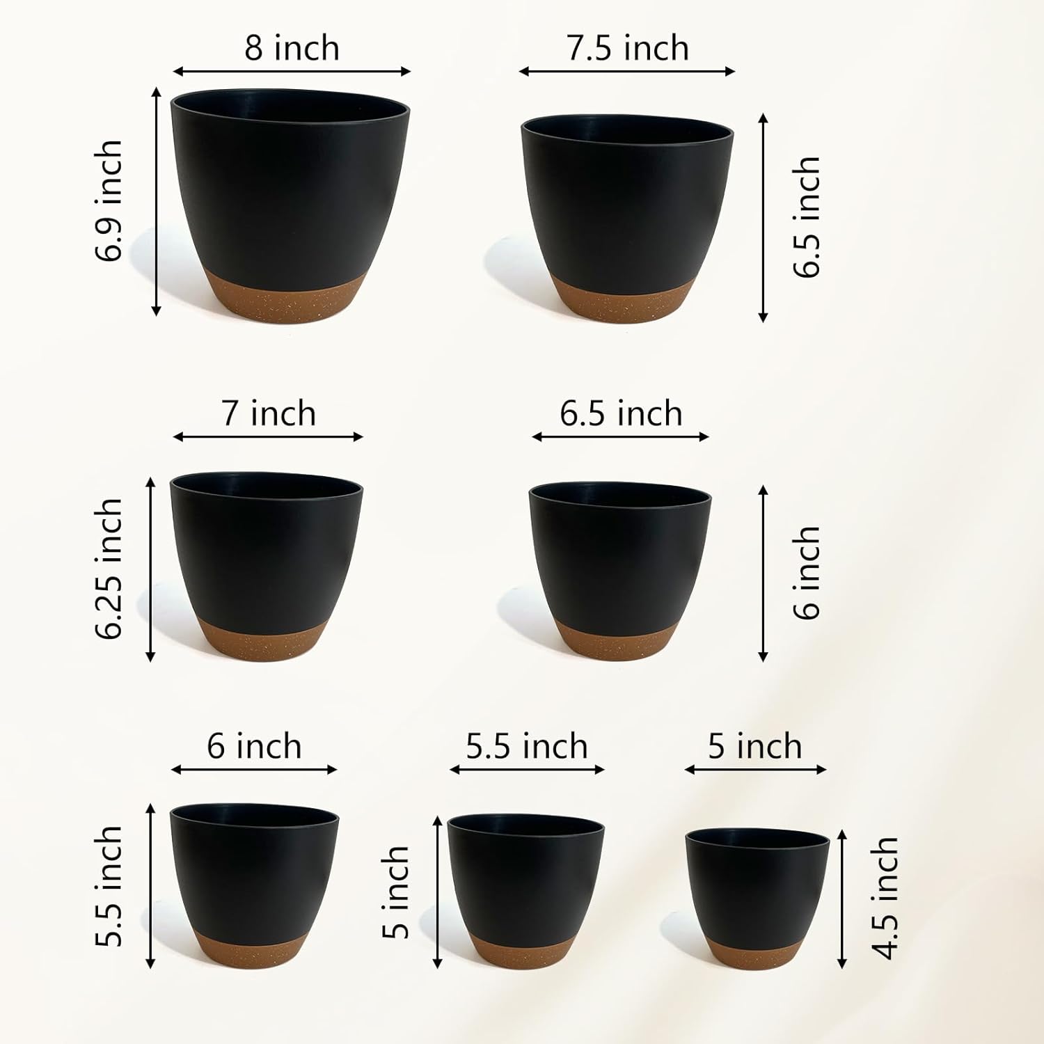 Black Self Watering Planters (7 Pack)