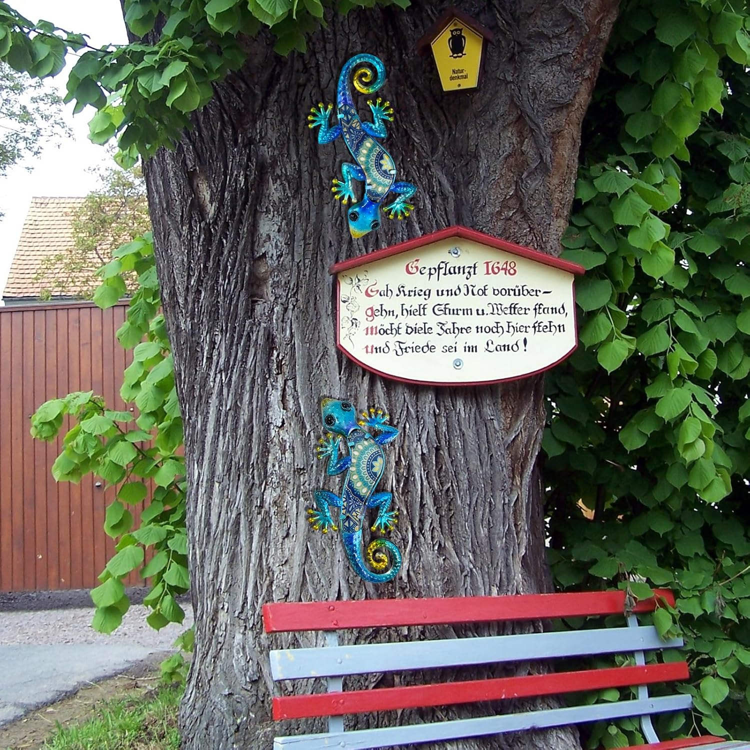 Decorate your patio, porch, or garden with this blue metal gecko wall art set. Designed in a bohemian mandala style, this outdoor wall decor adds color to coastal homes, beach houses, and indoor living spaces. Durable metal and glass construction makes it perfect for year-round display.