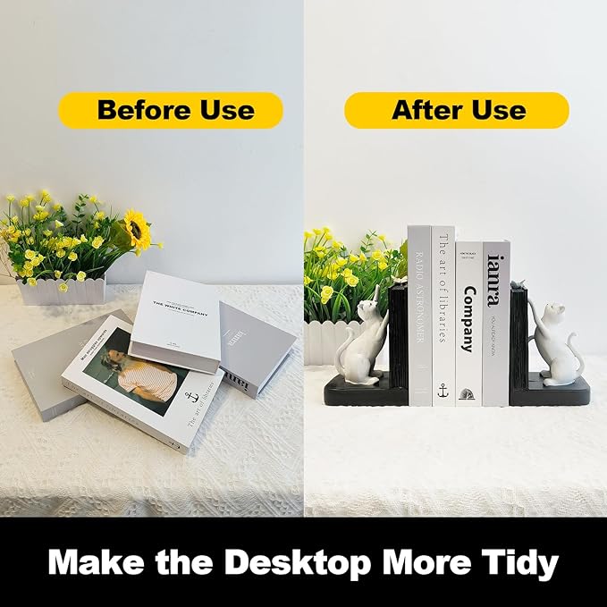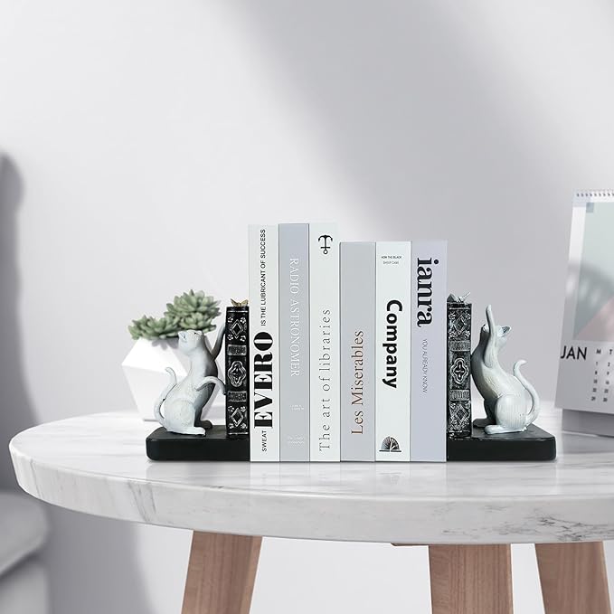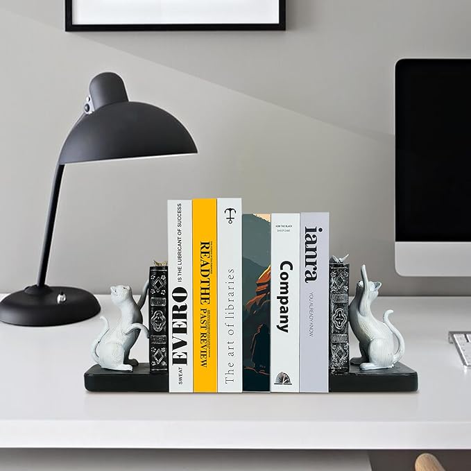LIFFY Bookends Decor Unique, Heavy Duty Book Holder, Non Skid Bookshelf Stopper, Cute Cat Book Ends for Shelves, Study, Office Desk