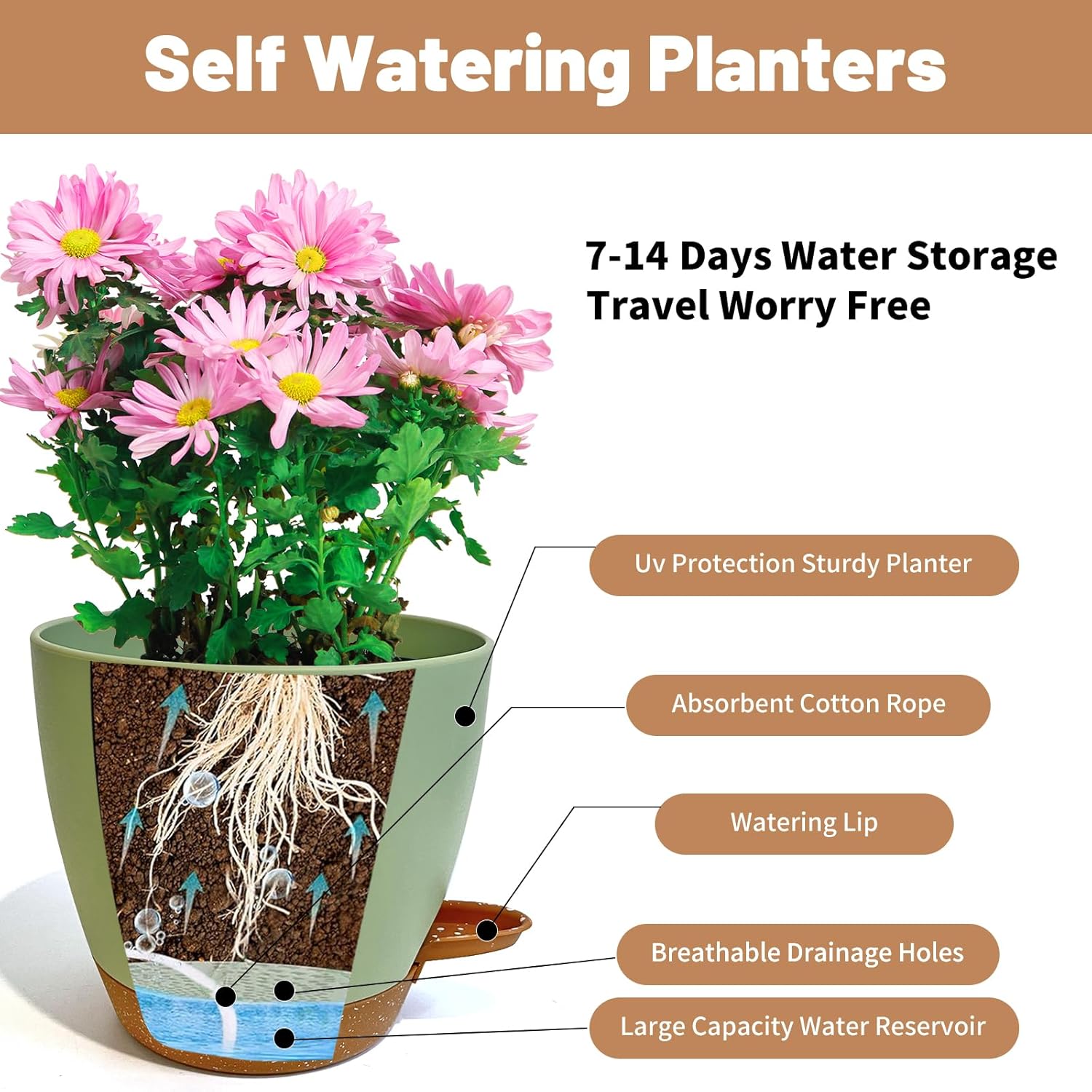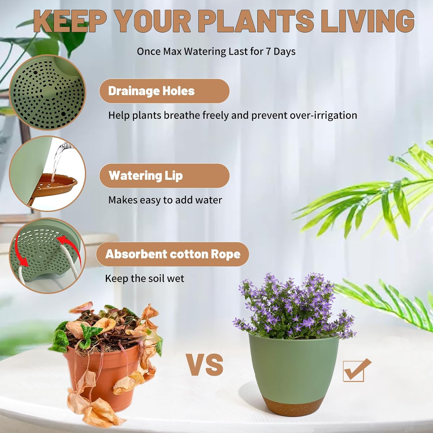 Enjoy a versatile set of 7 stylish, eco-friendly pots in various sizes, perfect for different plants. Featuring a long-lasting self-watering system with drainage for healthy growth, these durable pots are easy to assemble and ideal for home or office use, ensuring your plants stay hydrated and thriving effortlessly.
