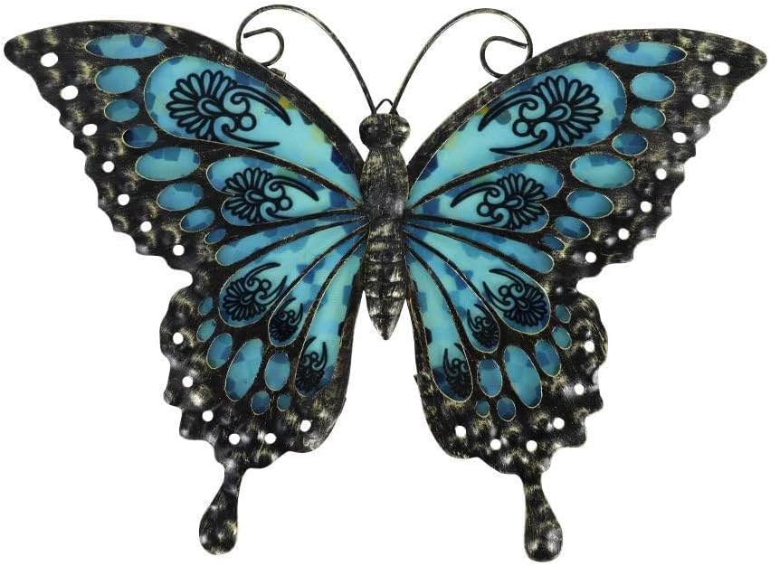 LIFFY Metal Butterfly Wall Decor Glass Outdoor Wall Art Sculptures 12″ Hanging Garden Decorations Indoor Home Decorative Ornaments for Patio Yard Fence Bedroom Living Room