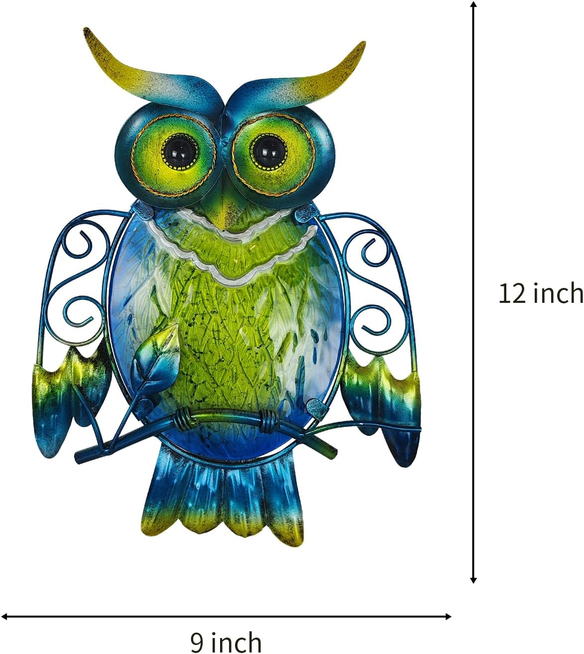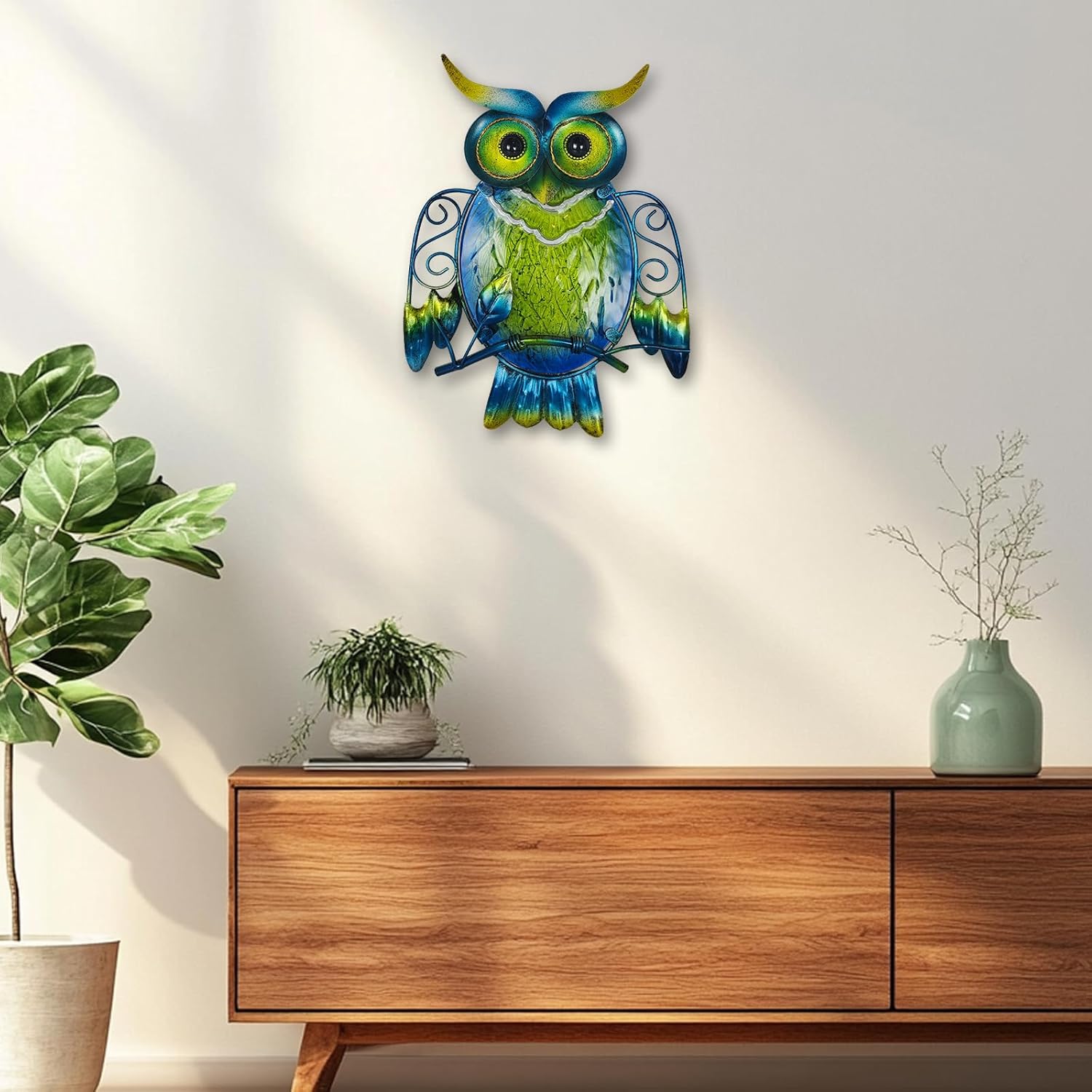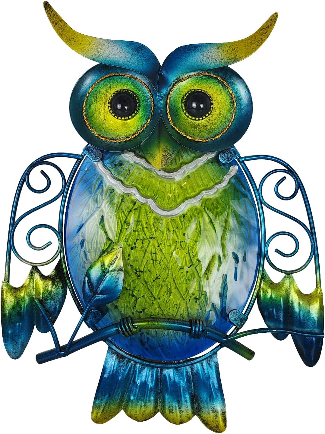 Metal & Glass Owl Wall Decor – Colorful Hanging Outdoor Wall Art