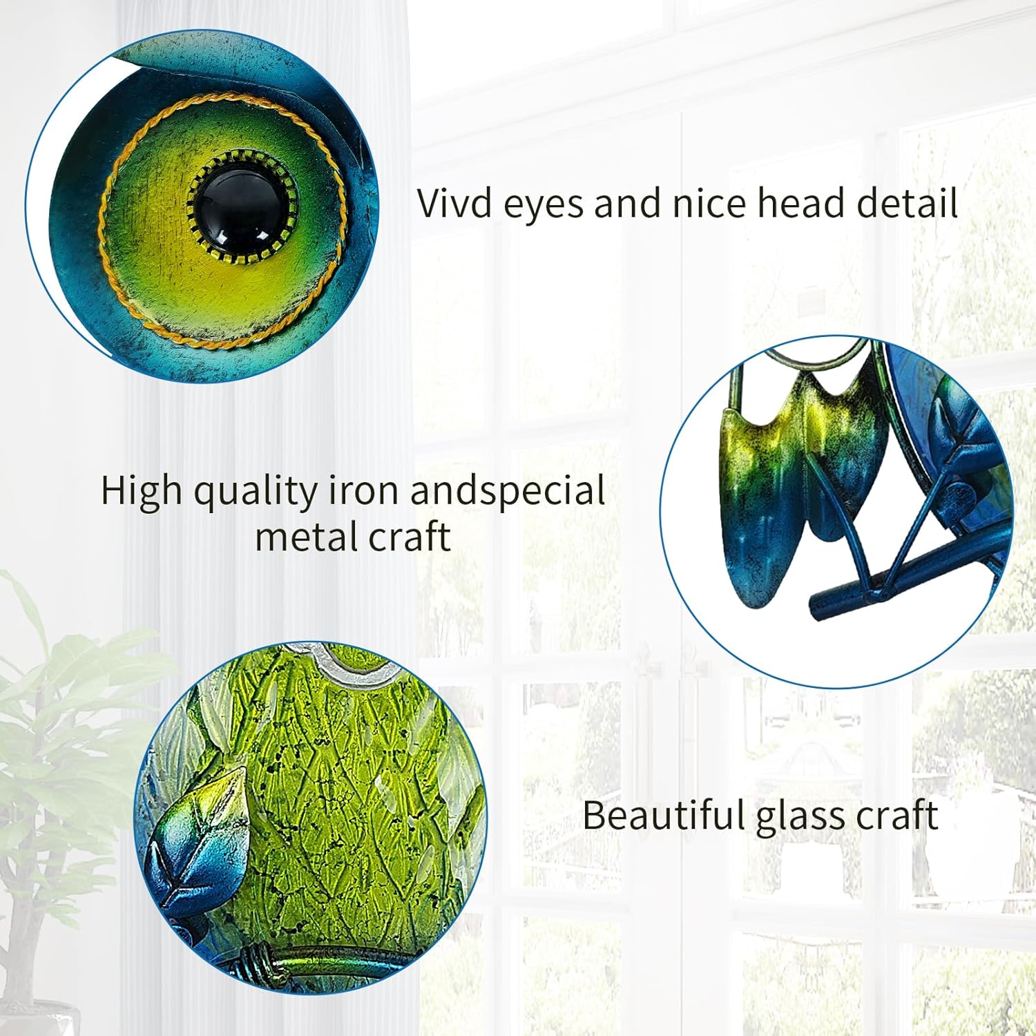 Crafted with durable metal and vivid stained glass, this owl wall art features exquisite detailing that catches the light beautifully. The vibrant blue-green glass accents sparkle in sunlight, creating a captivating focal point when hung on walls, fences, or tree branches in your yard or patio.