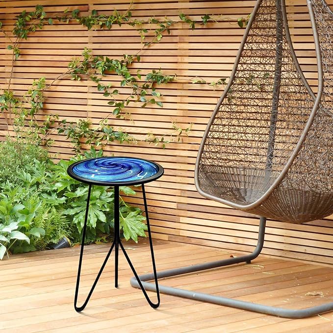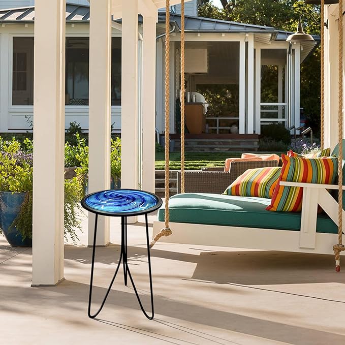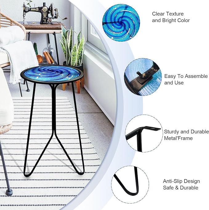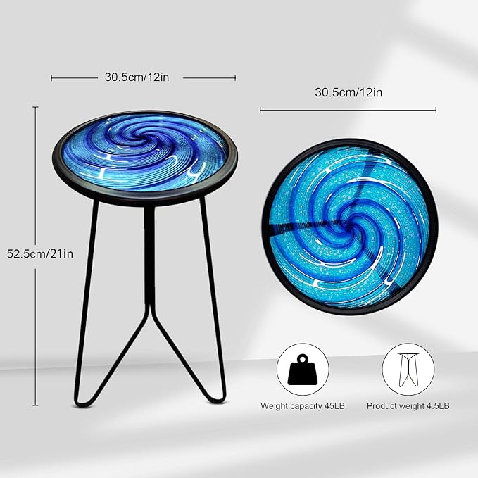 - Beautiful Round End Table – The tabletop made of hot melt process and clear surface texture, hand painted and colored, not easy to fade. The pattern of blue whirl is full of artistic and infinite fancy
