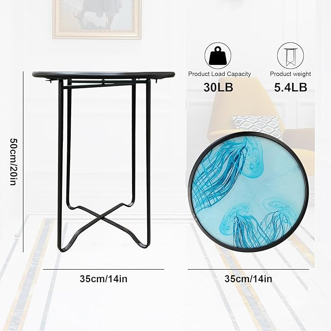 - 【Outdoor Side Tables for Patio】: The series of plant side tables are all of the clear texture and bright colors. The outdoor side tables is round glass tops with pretty Jellyfish pattern. You will love the quality and look when you place it in your space.