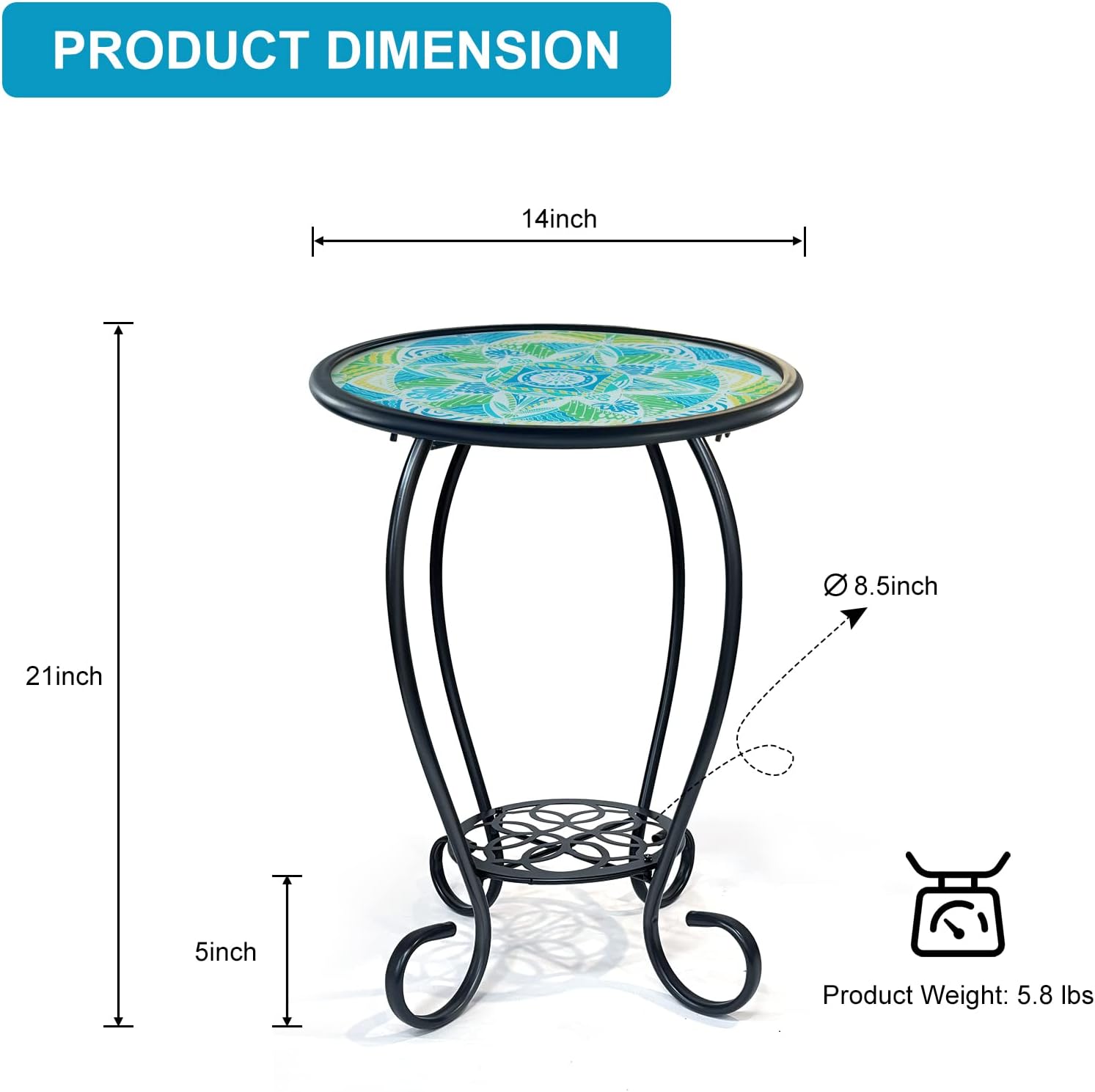 With a perfect size (21″ height, 14″ diameter) and lightweight 5 lbs build, this side table is easy to move and fits seamlessly in living rooms, bedrooms, porches, terraces, or beside sofas. Its sleek, portable design complements any indoor or outdoor setting effortlessly.