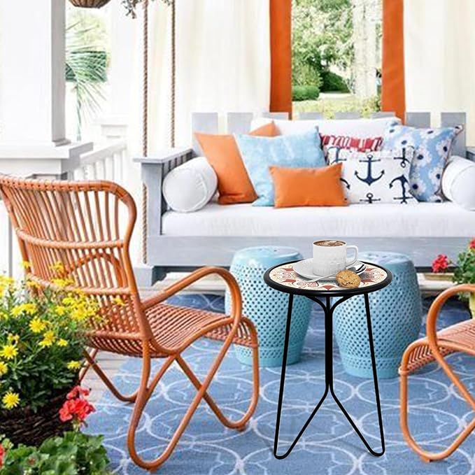 - 【Ideal Accent Table for Indoor/Outdoor】Use this decorative patio table to embellish your balcony, porch, garden, living room, bedroom, or kitchen. Its attractive hues and excellent texture make it suitable for any indoor or outdoor setting, making it a perfect addition to your home decor.