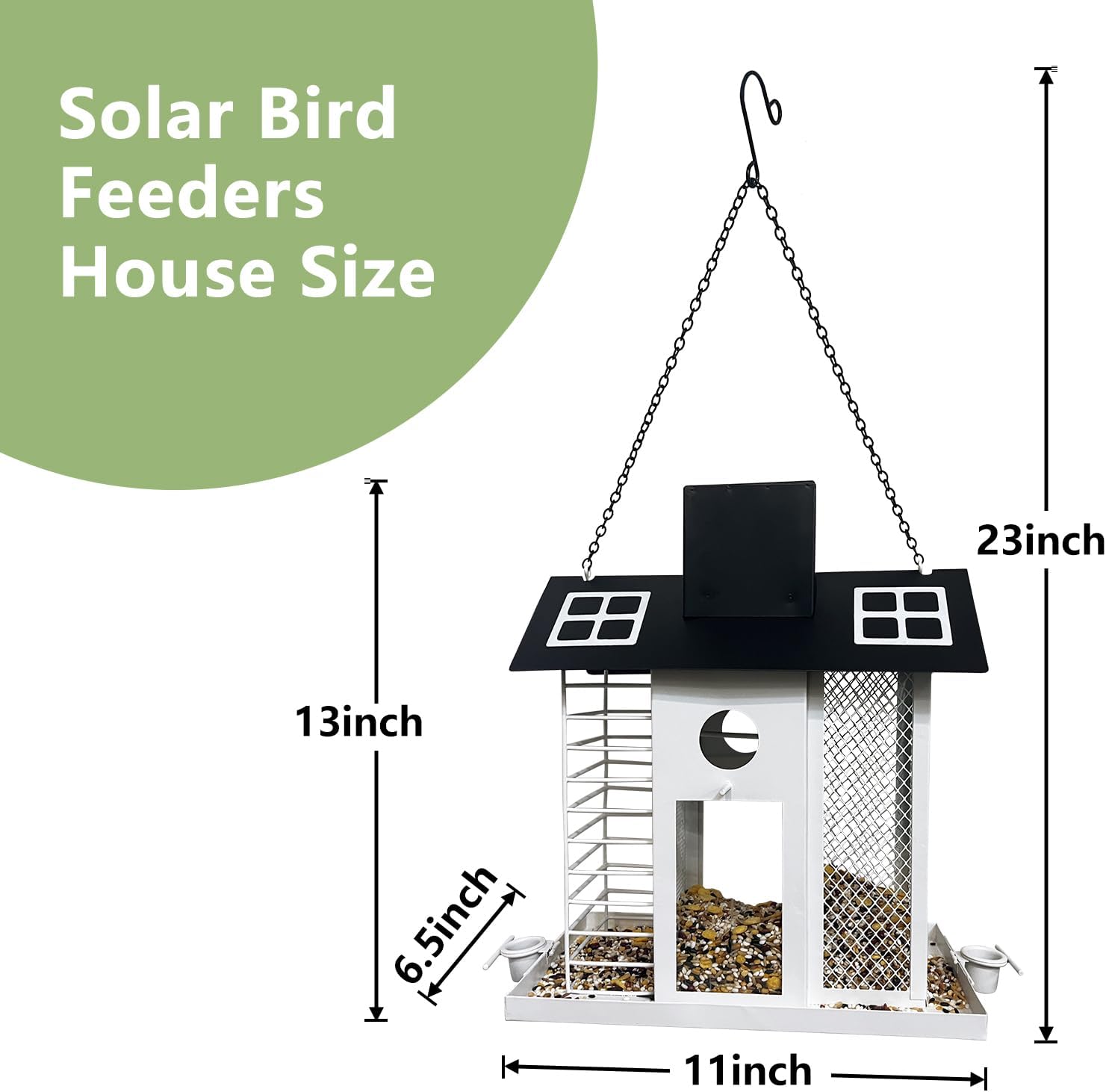 Designed for convenience, this feeder features dual side-opening windows for quick, mess-free seed refills. With a 5-pound capacity, it can hold enough food to sustain cardinals, blue jays, finches, sparrows, and other wild birds for extended periods between refills.