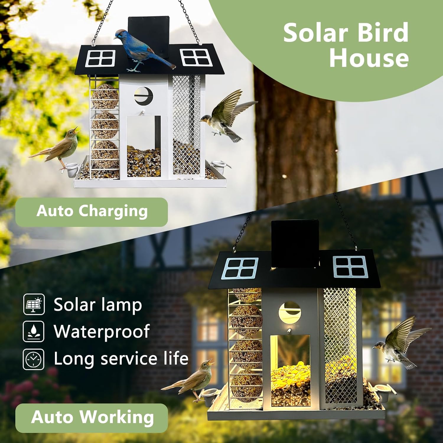 ☀️ Solar-Powered Bird House: Daytime Feeding, Nighttime Glow