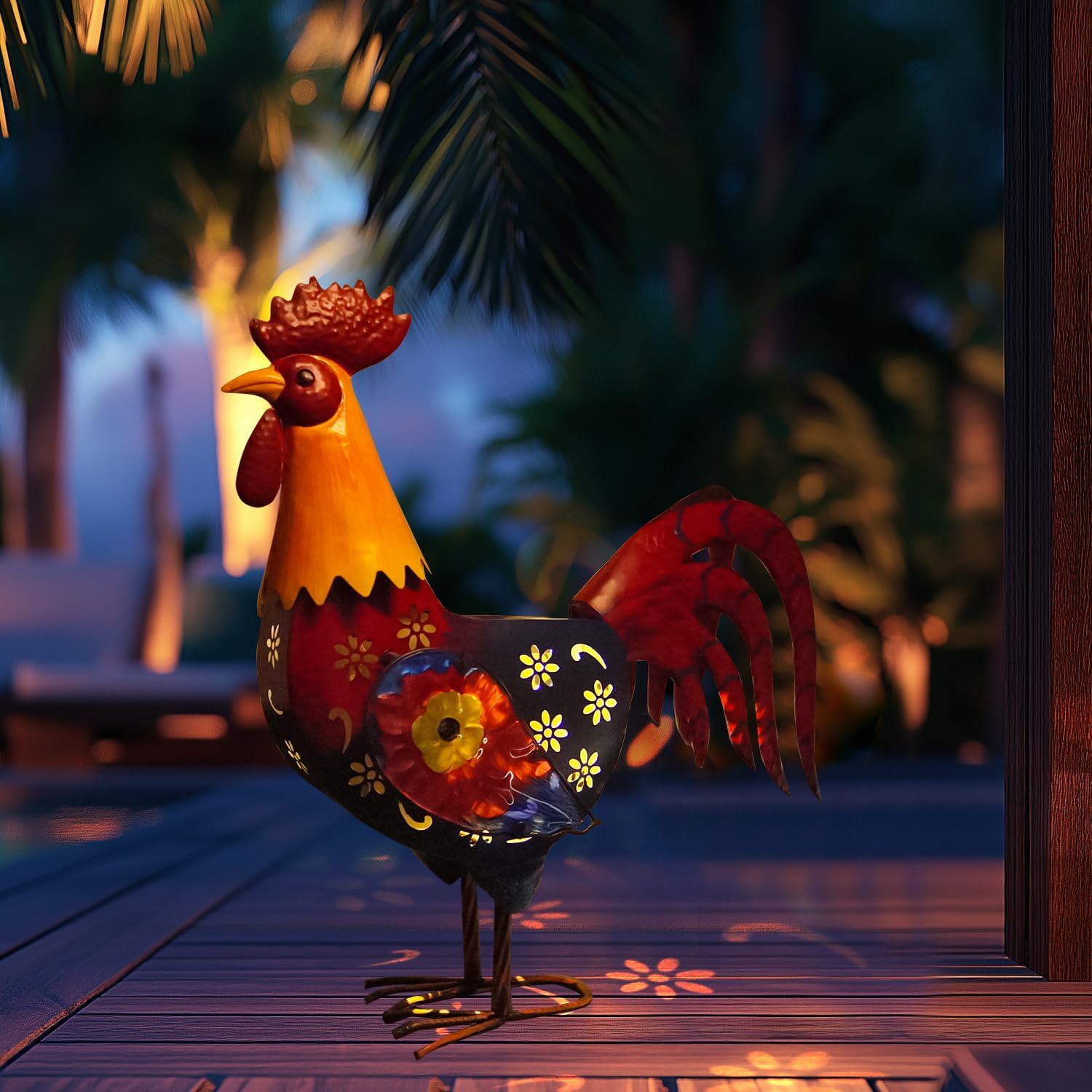 This Rooster Decor handcrafted from durable metal and premium glass materials with gorgeous metallic multi-colorful finishing painted by hand, which makes it more realistic, add a graceful and vivid touch to any outdoor scene or room.