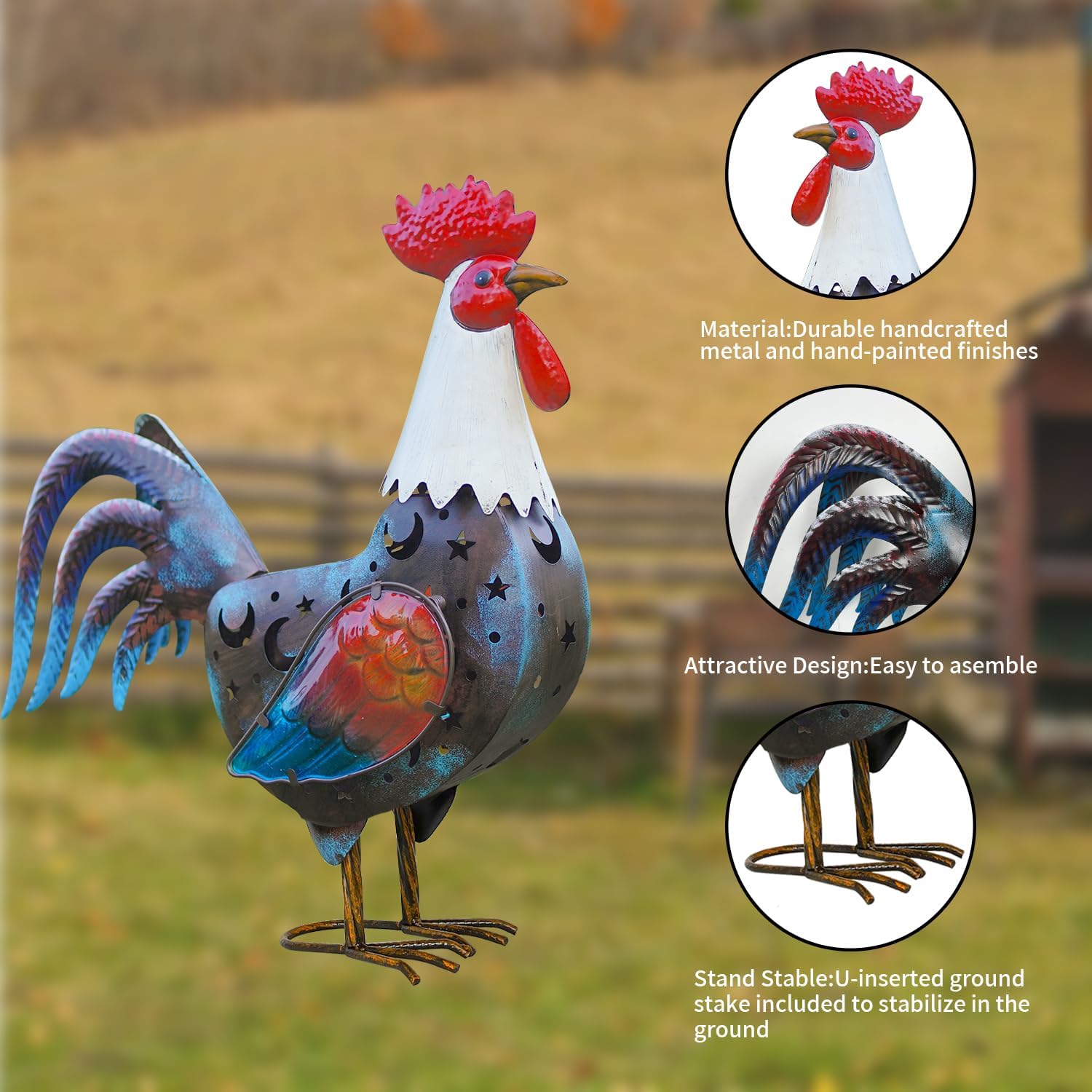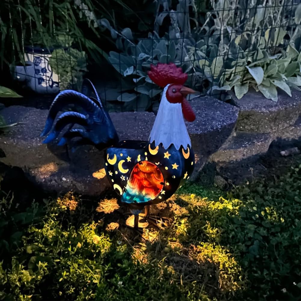 This handcrafted rooster ornament is crafted from sturdy metal and premium glass, showcasing a beautiful multi-color metallic finish painted by hand. Its lifelike appearance brings a touch of elegance and vibrancy to any outdoor area or indoor room.