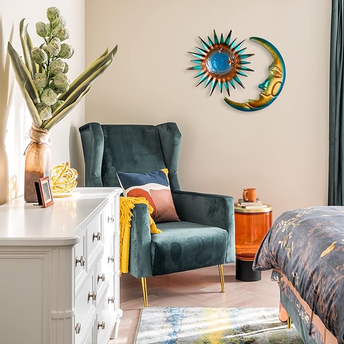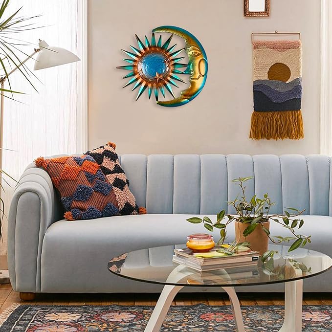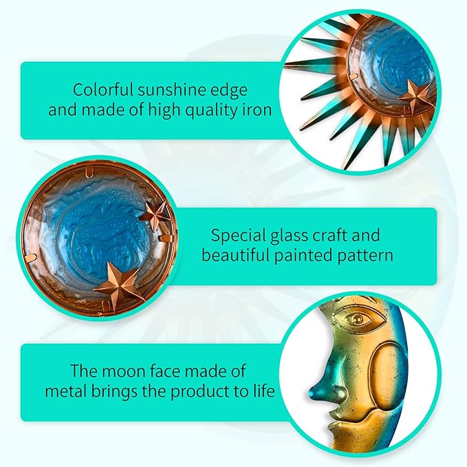 A High-Quality Metal Wall Art – Our Sun Wall Decor, is designed and manufactured to the highest quality standards in the US. It is Hand made with premium quality metal and glass, which is durable, weather-resistant, waterproof, and not easy to fade or rust.