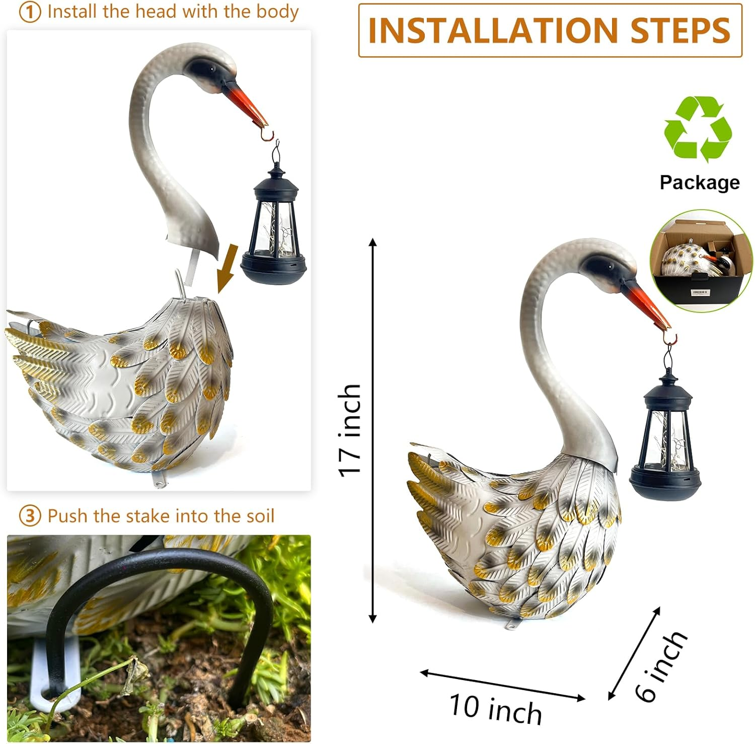Swan Sculpture Solar Lantern – Outdoor Garden Decor Metal Statue with LED Light for Patio, Poolside & Yard Art